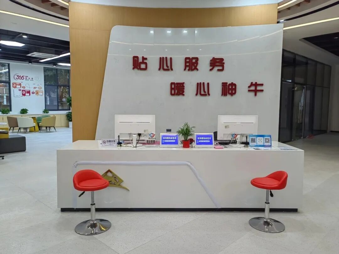 走进新党群服务中心,服务台背后的立体字“贴心服务 暖心神牛”引人注目,一楼大厅空间宽阔,一改往日行政化、办公化的固有形象,布置了未成年人活动区、365微议事区等功能区,便民亲民的装饰、干净整洁的环境、丰富多样的功能,营造出了“家”的浓厚氛围。