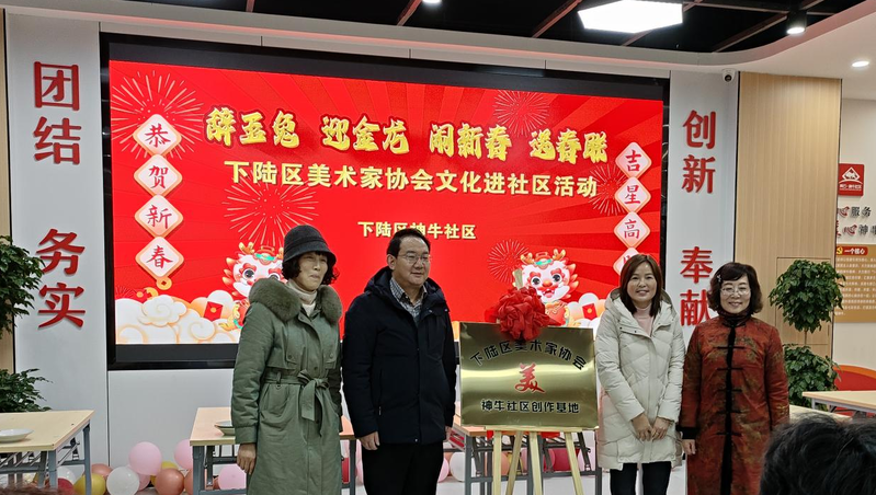 江丽所说的两件大事,一是经过大半年的施工建设,神牛社区新党群服务中心于1月27日正式对外开放。二是2月1日下陆区美术家协会神牛社区创作基地在社区揭牌。