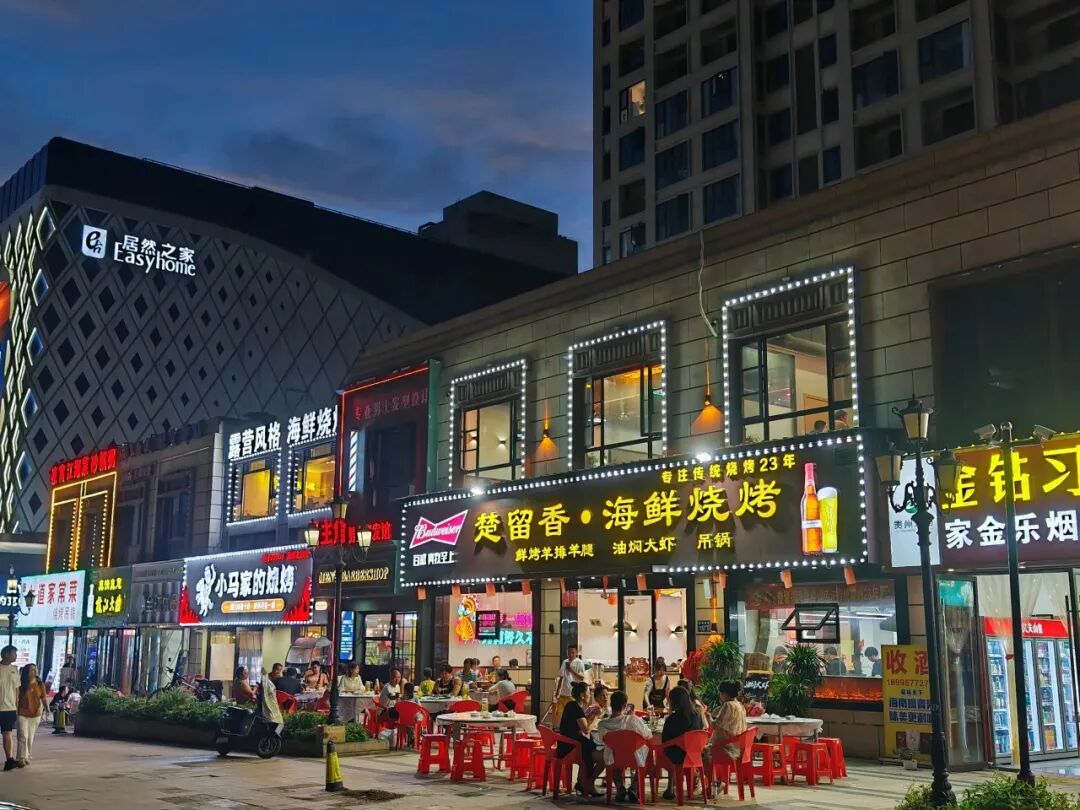 在居然之家外围靠杭州西路北侧,还形成了一条特色美食商业街,除了中商平价超市、麦当劳、金皇冠蛋糕、良品铺子等品牌店聚集外,还吸引了熊二烧烤屋、广顺兴、蚝享你烧烤工场、二嫂煨汤等商家入驻,每晚前来就餐的顾客络绎不绝、热闹非凡。