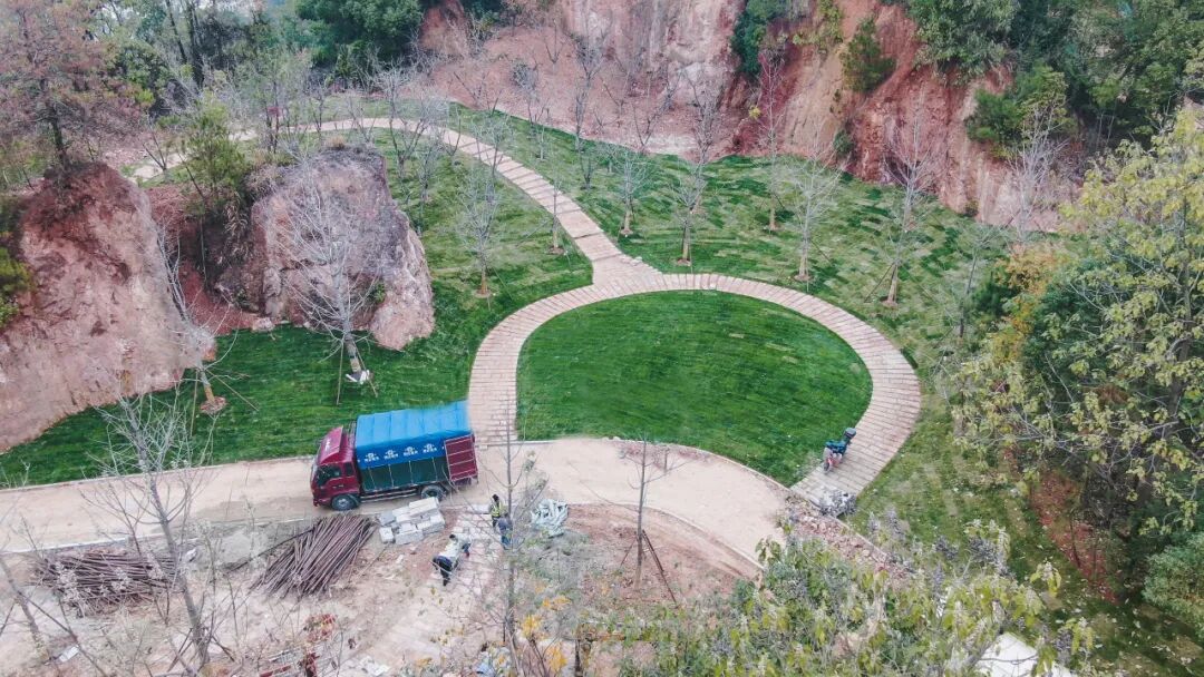 沿红梅岭附近的步道前行,可来到栽种有几十棵银杏树的银杏谷。银杏谷里,工人借助洒水车对刚种不久的银杏树进行洒水作业,4名工人正在搭建一座木质结构的休憩亭。红梅岭、银杏谷建设过程中,增加了一些不同色彩的植物,并搭配了其他品种的花卉,将形成“四季皆有花、各处都有景”的景观。