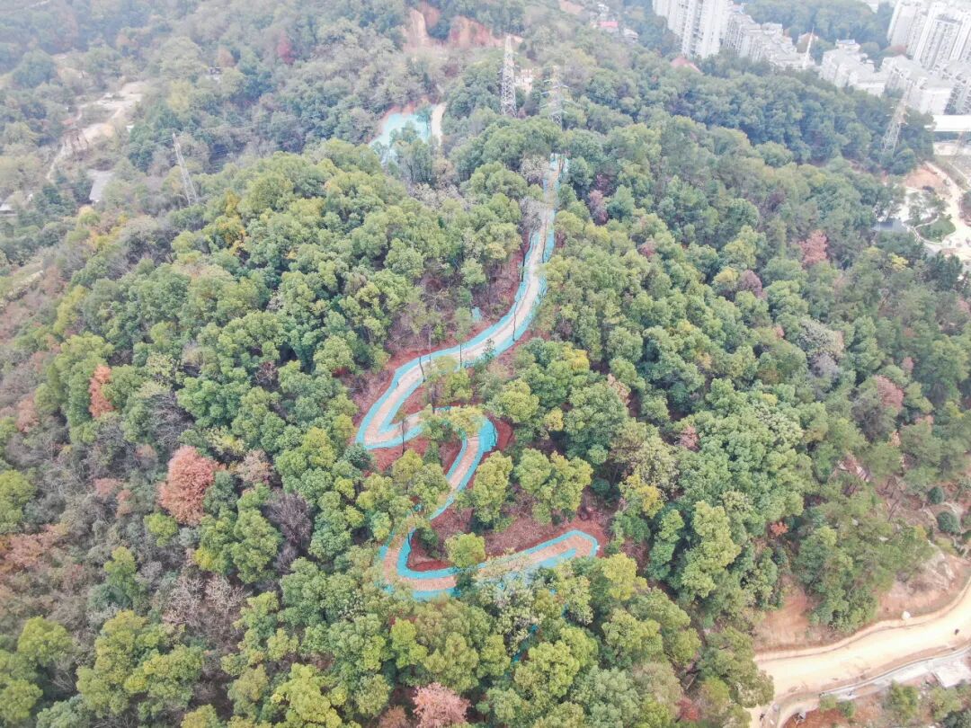“公园主循环车行游路全长约4.2公里,砼路基已全部完成浇筑,预计本周开始铺设沥青。”区建设局城建办负责人介绍,青龙山公园一期山体游步道全长约4.3公里,目前铺装工作已全部完成。