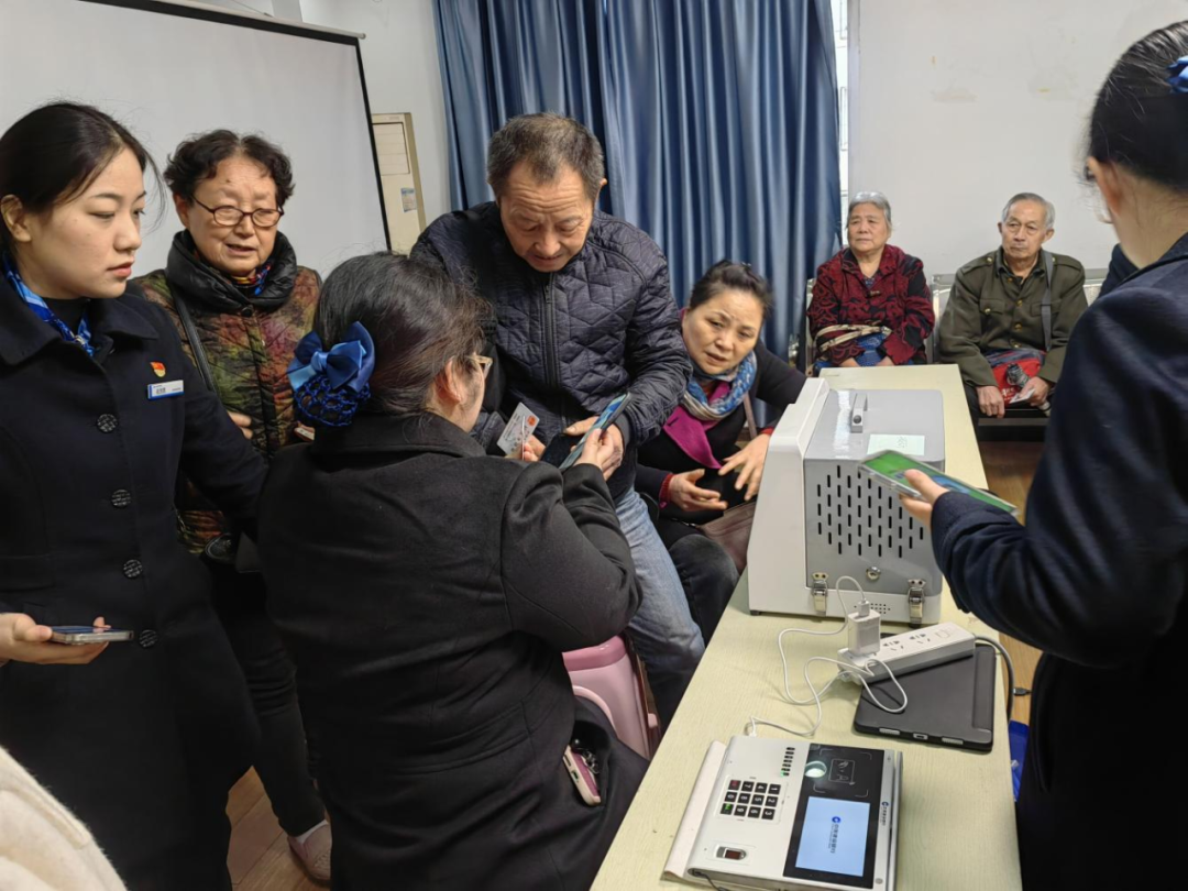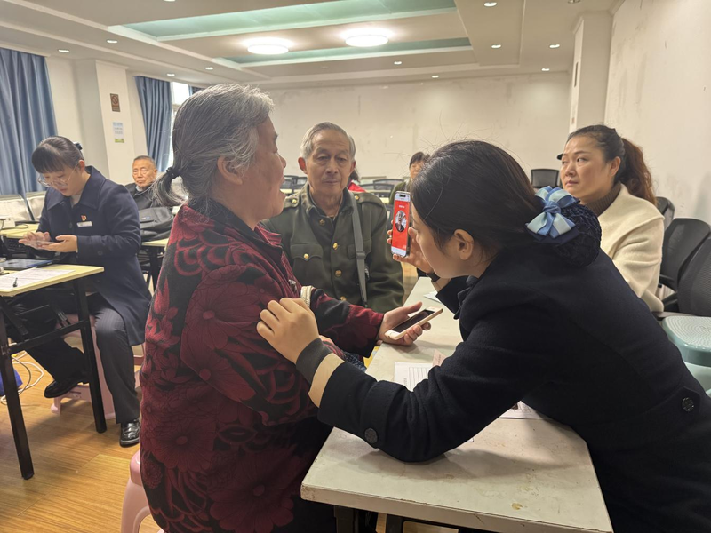 当天,南湖社区联合建设银行,开展“我为群众办实事 服务最后一米”活动,帮助居民更换第三代社保卡。在社区和银行工作人员引导下,居民依次进行信息采集、拍照、确认等流程,社区工作者随后手把手协助居民激活电子医保卡,耐心解答居民所关心社保卡损坏、遗失后挂失、补发流程等问题,让居民切切实实听得懂、看得会、能够用。