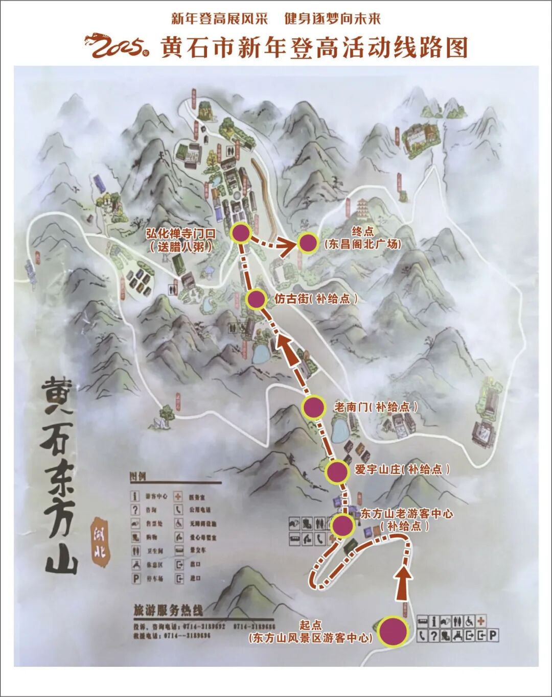 东方山风景区游客中心(起点)——东方山老游客中心——东方山风景区南门停车场——仿古街——弘化禅寺门口——东昌阁北广场(终点),全程沿主干道行进,长度约6公里。
