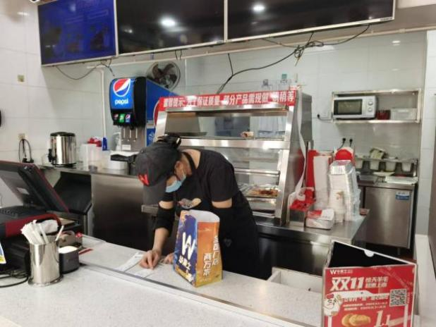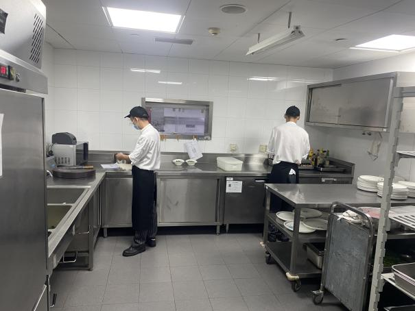 上榜理由:操作人员按规定穿衣戴帽,环境卫生干净整洁,工作区物品摆放有序,食材贮藏区无杂物。