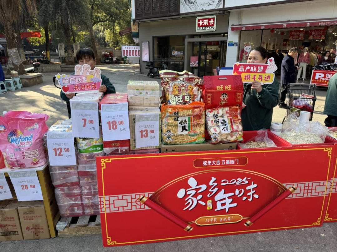 在放心好物推荐区,辖区商场、超市纷纷让利促销,将自家的特色产品进行展示展销和互动体验。“阿姨,可以试吃一下我们的核桃味花生。”各摊位前,来来往往试吃购买的居民络绎不绝,瓜子、新鲜牛奶、米面油等深受居民欢迎。