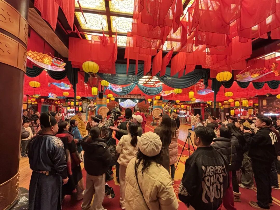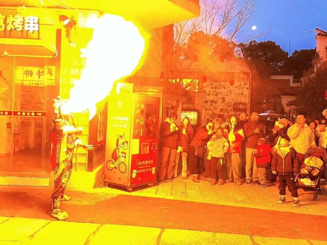 与此同时,未苏湾景区在唤鱼池畔交织出一场最“有料”的古典奇幻夜,非遗绝技的震撼变脸喷火,小丑互动与幸运抽奖,浪漫满分的池面星瀑与许愿灯河,每一刻都充满惊喜,每一个角落都是戏。在月牙湾露营地,大家拓印年画、参与篝火晚会与烟花狂欢,在温暖火光中告别旧岁、迎接新春,节日氛围热烈。