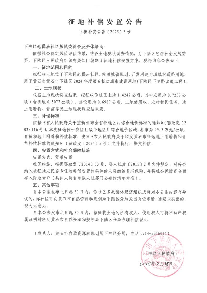 名 称: 征地补偿安置公告(下征补安公告【2025】3号)