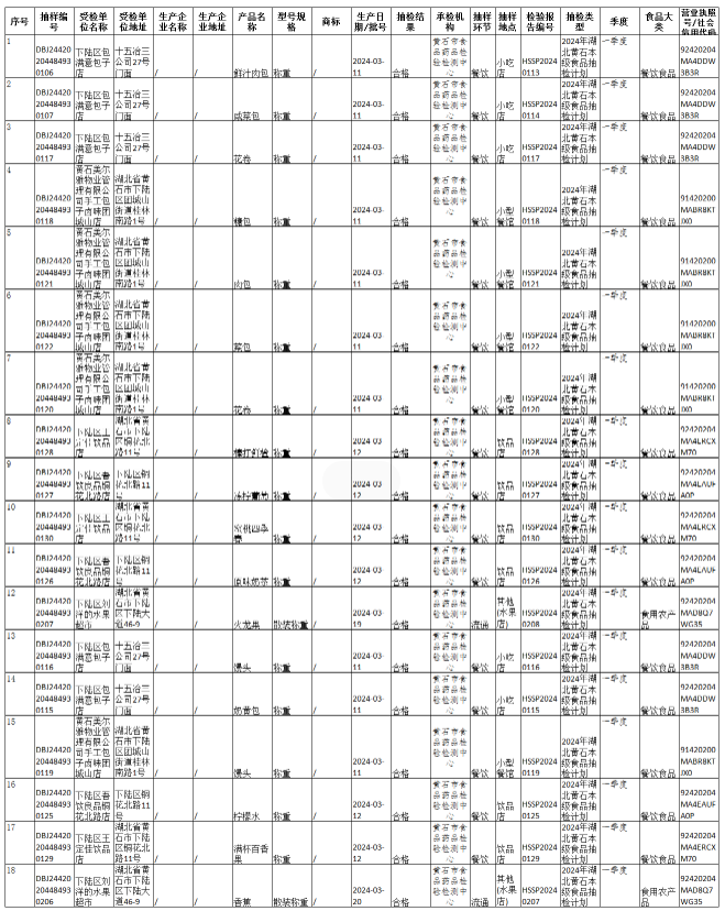 名 称: 下陆区市场监督管理局2024年一季度食品安全监督抽检信息公示