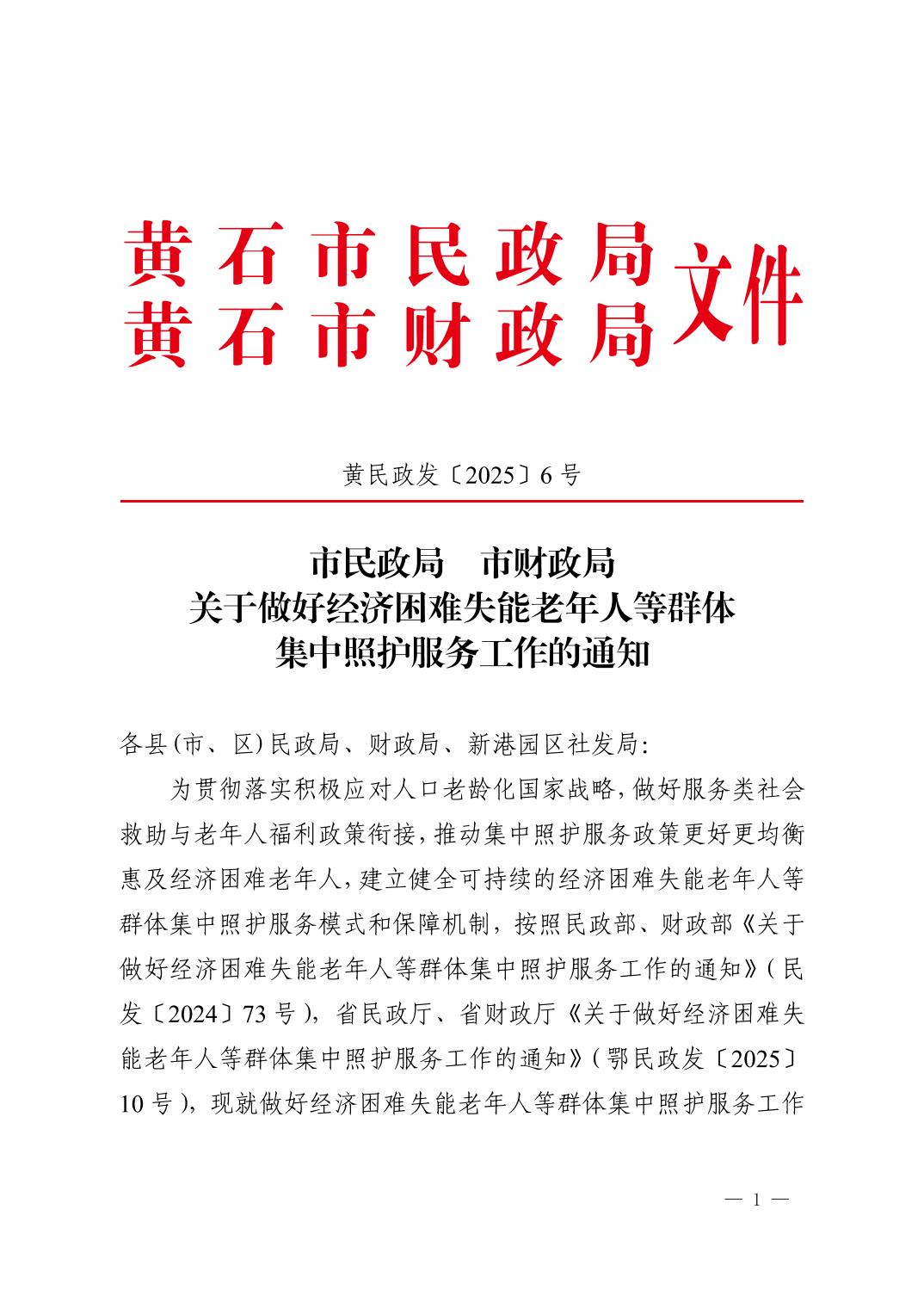 名 称: 市民政局 市财政局关于做好经济困难失能老年人等群体集中照护服务工作的通知