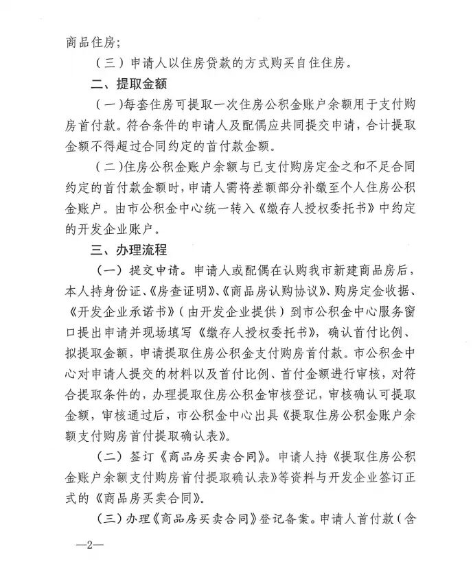 据了解,我市住房公积金缴存人,只要无未结清住房公积金贷款,住房公积金账户不存在担保、冻结情形;购买的住房为家庭名下(包括申请人、配偶、未成年子女)首套或二套自住住房,且该房屋为我市新建商品住房;以住房贷款的方式购买自住住房的,均可申请提取。