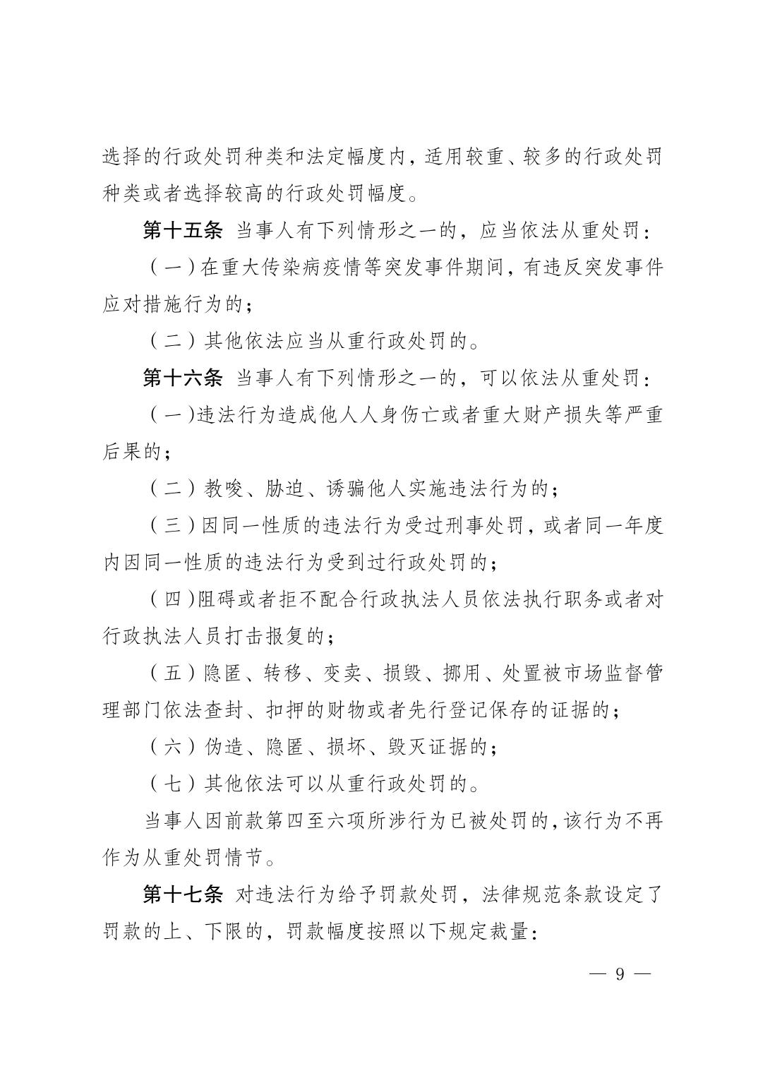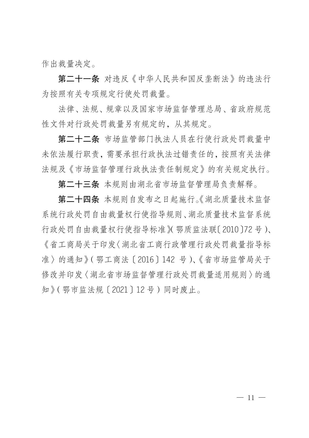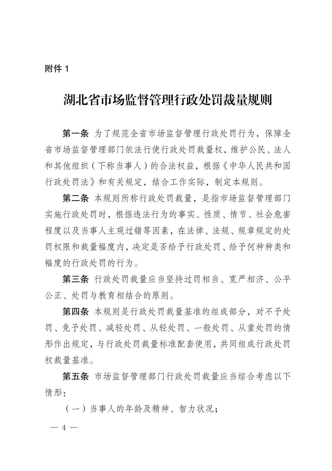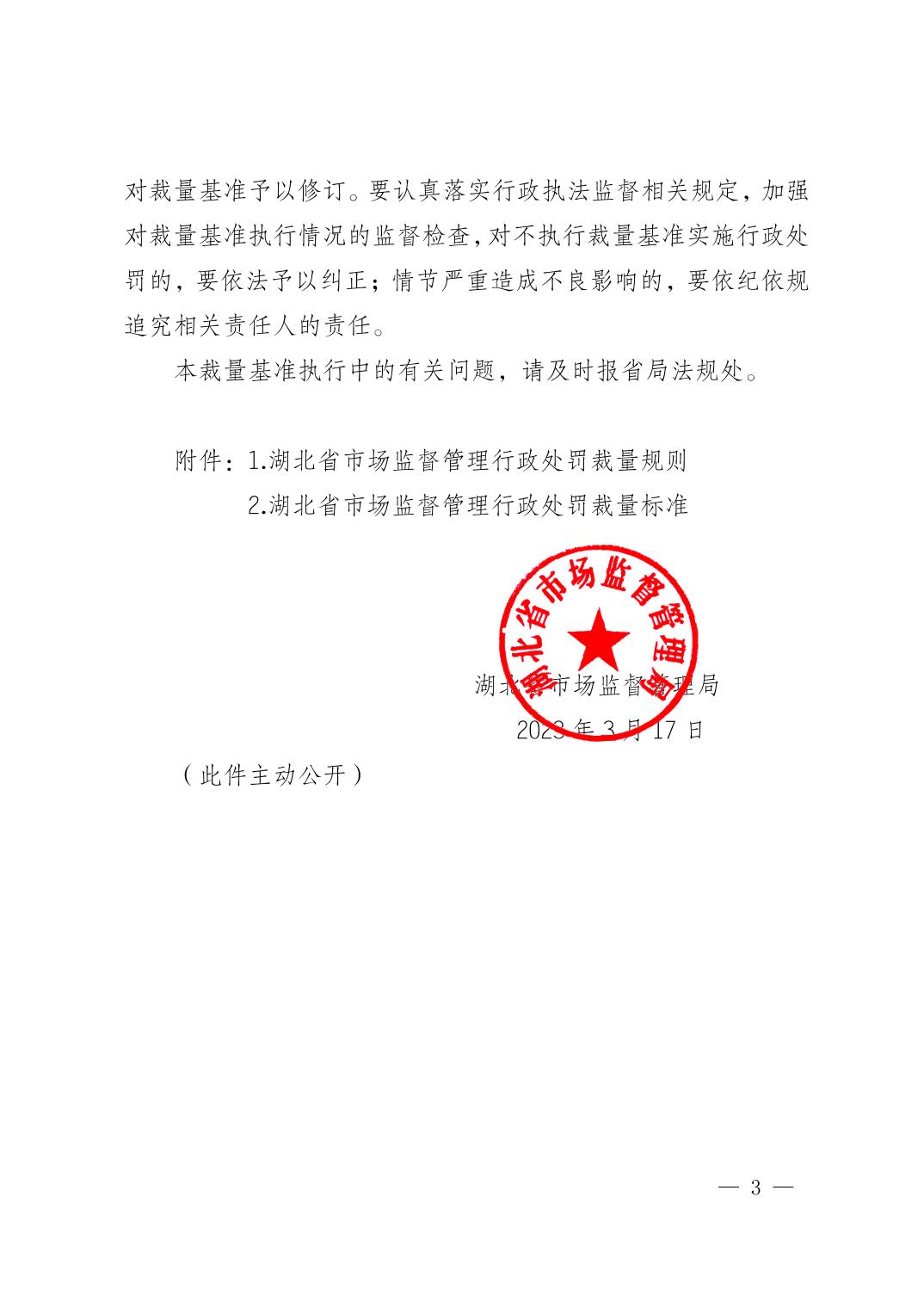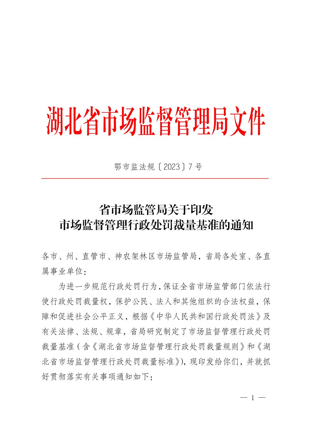 湖北省市场监管局关于印发市场监督管理行政处罚裁量基准的通知