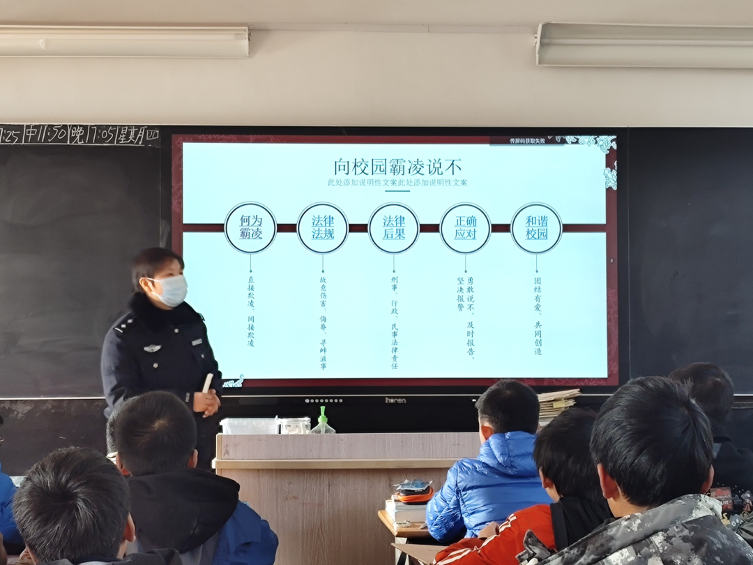“我们如果遇到校园欺凌行为,就一定要勇敢说不、及时报告、坚决报警。”在现场的学生们纷纷向董珊珊表示道。发人深省的案例,实用的法律知识,耐心真诚的讲解,使学生们“零距离”体会到了法律的庄严与神圣,增强了师生的法治观念和自我保护意识。