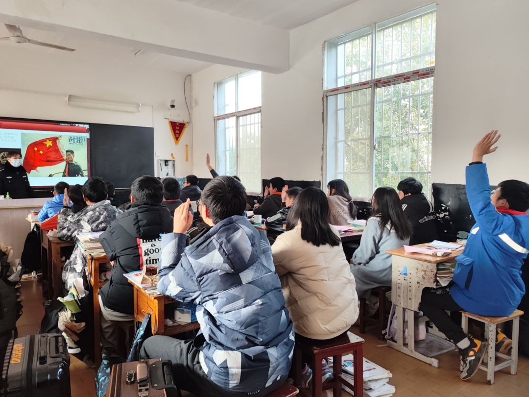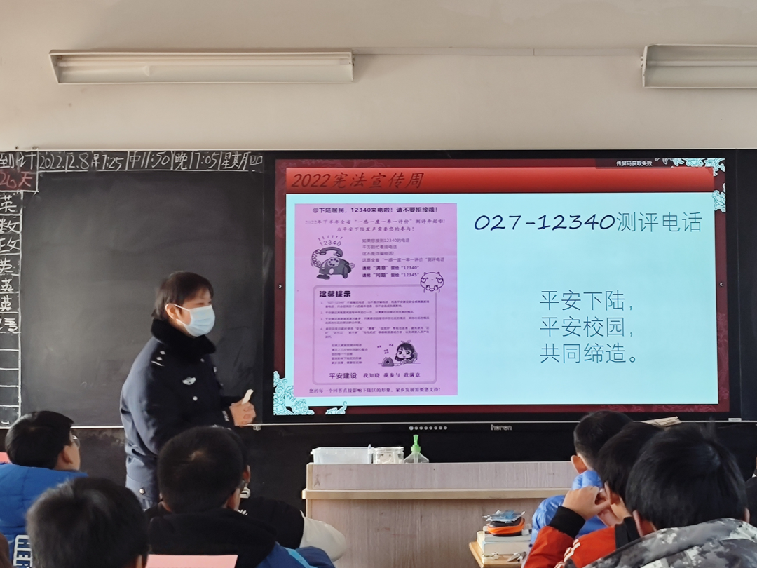 宣讲结束后,民警王建民又向师生们普及了“一感一度一率一评价”测评工作,如自己或家属收到“027-12340”的来电请耐心接听,用多一份包容、多一份理解的心态,参与到平安建设中来。