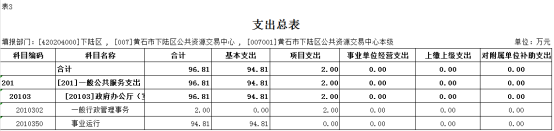下陆区公共资源交易中心本级为一级预算单位,由中心本级、0个直属参公管理事业单位、0个公益类事业单位合并编制报表。中心机关内设党政办公室、政府采购业务中心2个机构。
