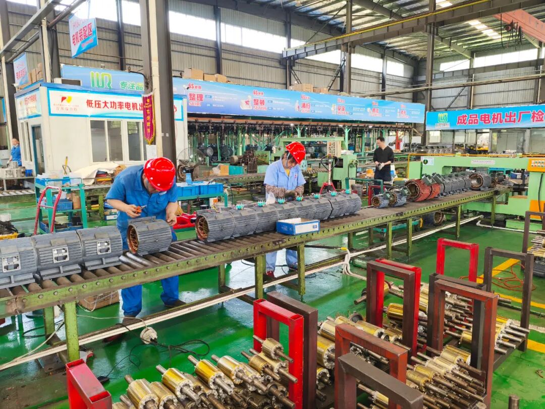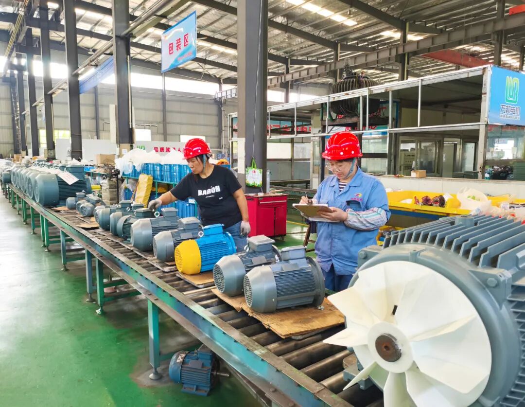 在万邦电机总装车间,一台台电机经过绕线、嵌线、真空浸漆、装配、出厂测试等工序,被运送到包装区等待发货。