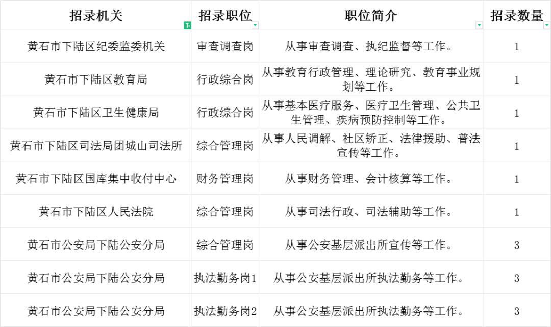 各招录机关具体的招考人数、职位资格条件等详见职位表,有关报考政策、报名网络技术等事宜详见《湖北省2025年度省市县乡考试录用公务员报考指南》,报考人员可于2025年1月6日起通过湖北省人事考试网(https://rst.hubei.gov.cn/hbrsksw/)查询。