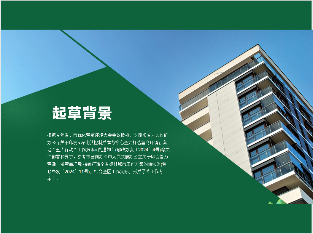 政策关联:区人民政府办公室 关于印发《下陆区2024年“打造一流、争创标杆”优化营商环境工作方案》的通知
