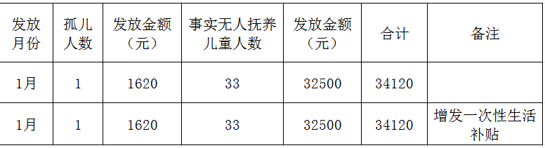 名 称: 下陆区2025年度1月份孤儿基本生活补助发放公示