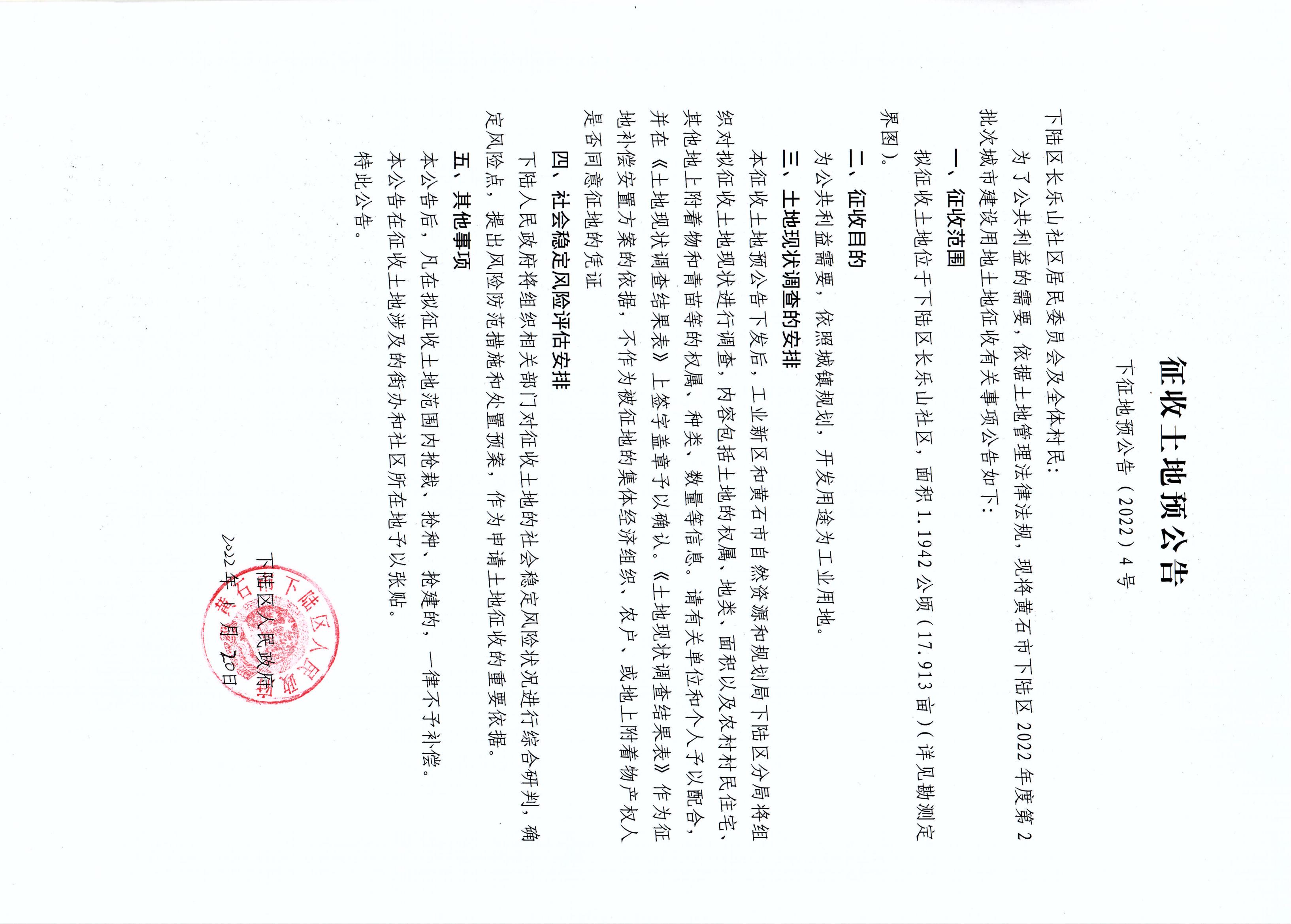名 称: 征收土地预公告(下征地预公告〔2022〕4号)