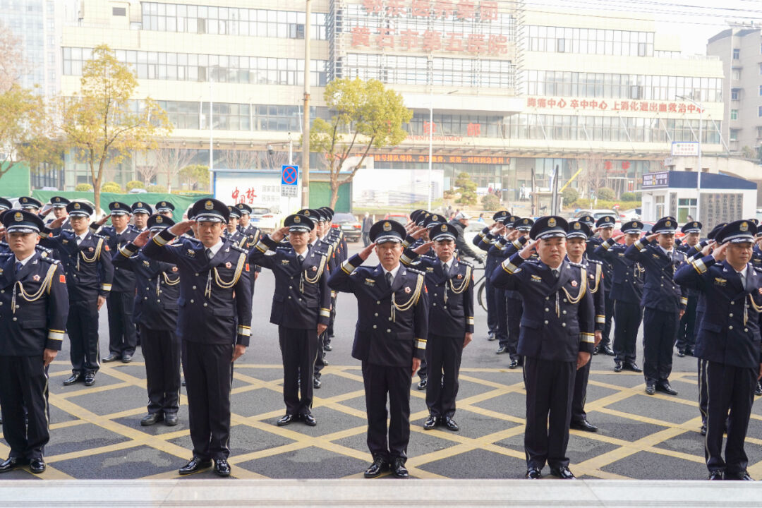 “敬礼!”随着《中国人民警察警歌》的旋律响起,下陆公安全体肃立,头顶的国徽金光灿灿、胸前的绶带熠熠生辉。警旗迎着晨风徐徐升起、猎猎作响,全体民警面向警旗庄重敬礼。