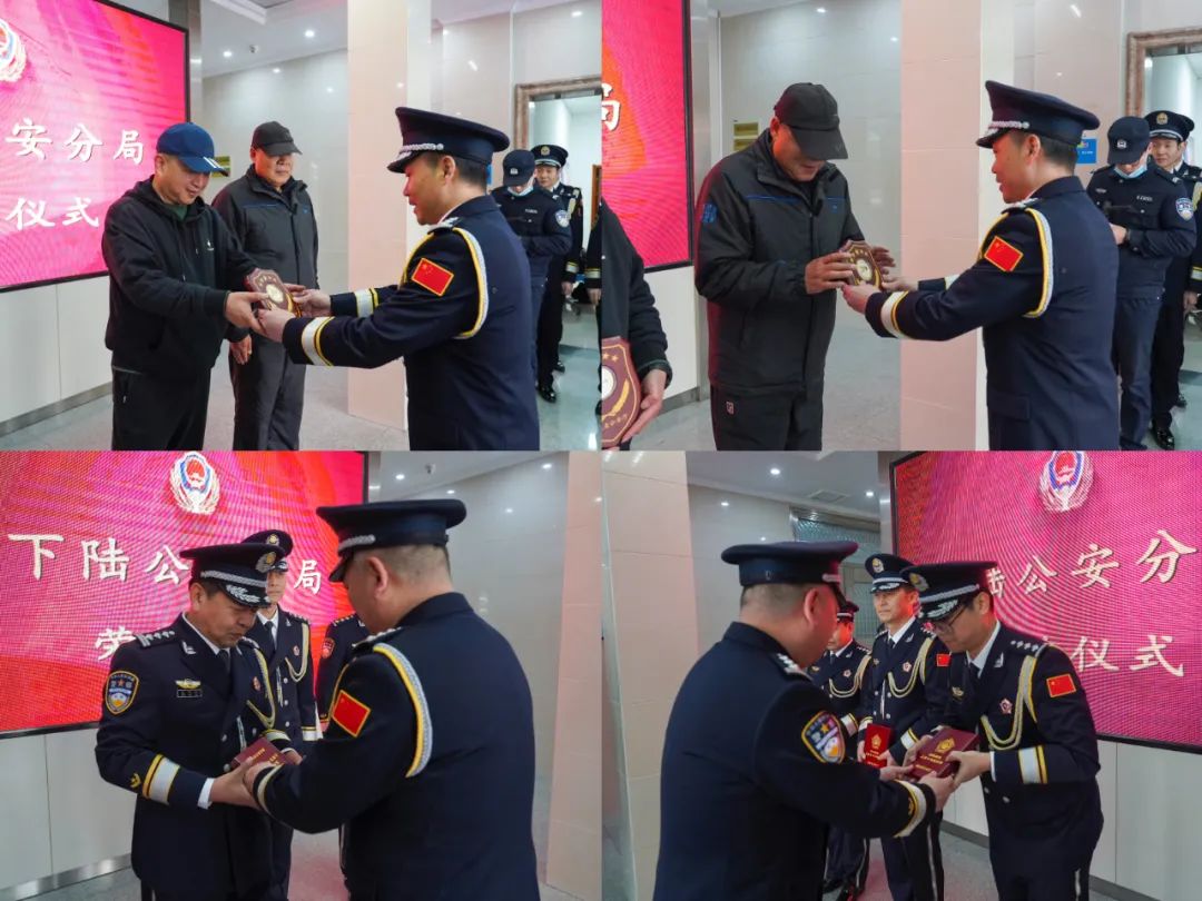 傅峰代表分局党委向退休老同志表达崇高敬意、向获得表彰奖励和从警纪念章的民辅警表示祝贺。他表示,公安薪火代代相传,希望大家珍惜荣誉、再接再厉,积极践行“对党忠诚、服务人民、执法公正、纪律严明”的重要精神,推动下陆公安工作高质量发展。